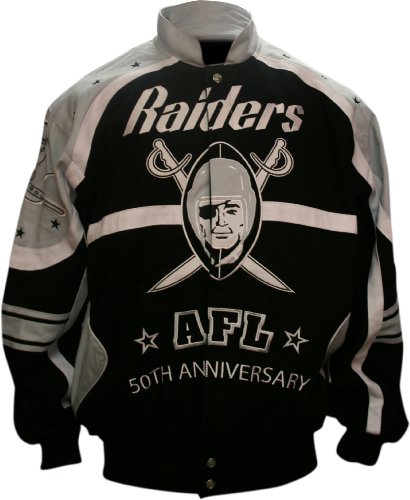 Show off your dedication to the Raiders with the NFL® Oakland Raiders Legacy jacket. It displays team wordmarks and logos and 50th Anniversary AFL graphics, while contrast-color panels, stripes and stars add spirited touches. Read more...