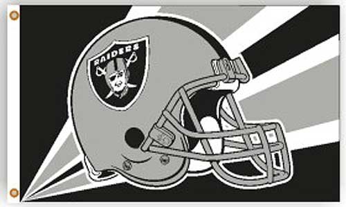 Oakland Raiders 3'x5' Helmet Design Flag - This high quality flag is constructed of polyester and is 3'x5' in size. The design is viewable from both sides, with the back side being a reverse image. The flag has two metal grommets for attaching to a flag pole. It's also perfect to use as a wall hanging for your rec room, office, den or any other room. Made by Fremont Die. Read more...