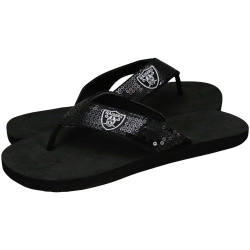 Free Shipping Oakland Raiders Ladies Black Sequin Strap Flip Flops @ Amazon.com